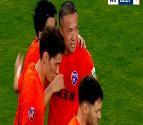 这球射得巧!韩子龙接长传凌空垫射挑过门将破门,玉昆10津门虎