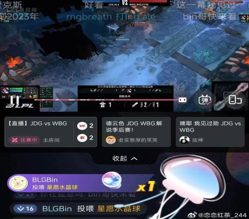 电竞资讯6月1日称 LPL第二赛段淘汰赛WBG对阵JDG的决胜局赛前SOLO,Breathe和Ale在直播SOLO时,Bin出没并在官方直播间刷了礼物。